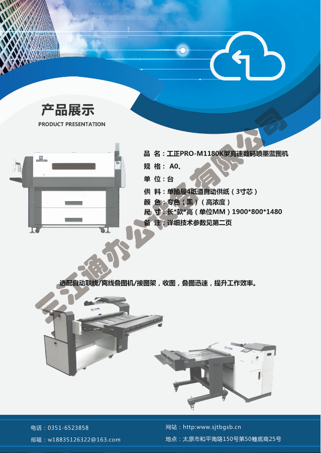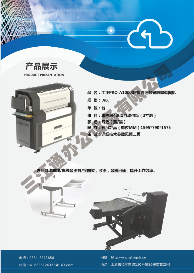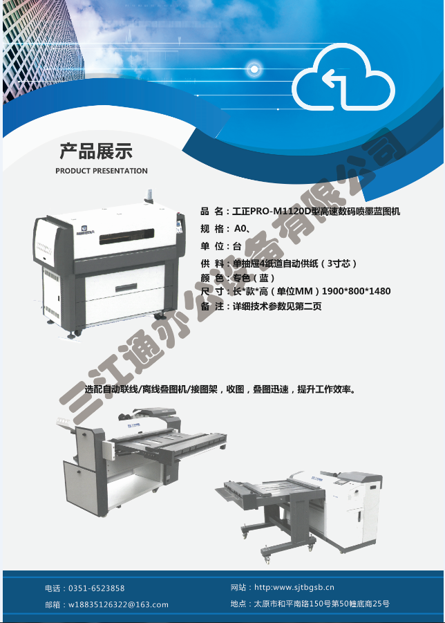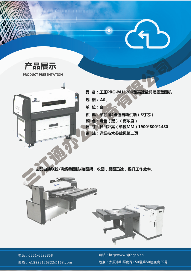 太原市三江通辦公設(shè)備有限公司是一家專業(yè)從事曬圖機、數(shù)碼復(fù)印機、多功能打印、復(fù)印、掃描、縮放一體機、模擬工程復(fù)印機、繪圖儀、大型掃描儀、電子歸檔設(shè)備、手動、自動成形圖紙檔案密集柜、圖前圖后設(shè)備以及所有制圖設(shè)備耗材供應(yīng)、維修一條龍的實體企業(yè)。多年來,已與日本、北京、天津、上海、杭州等諸多家廠方多方合作,成為山西>>更多